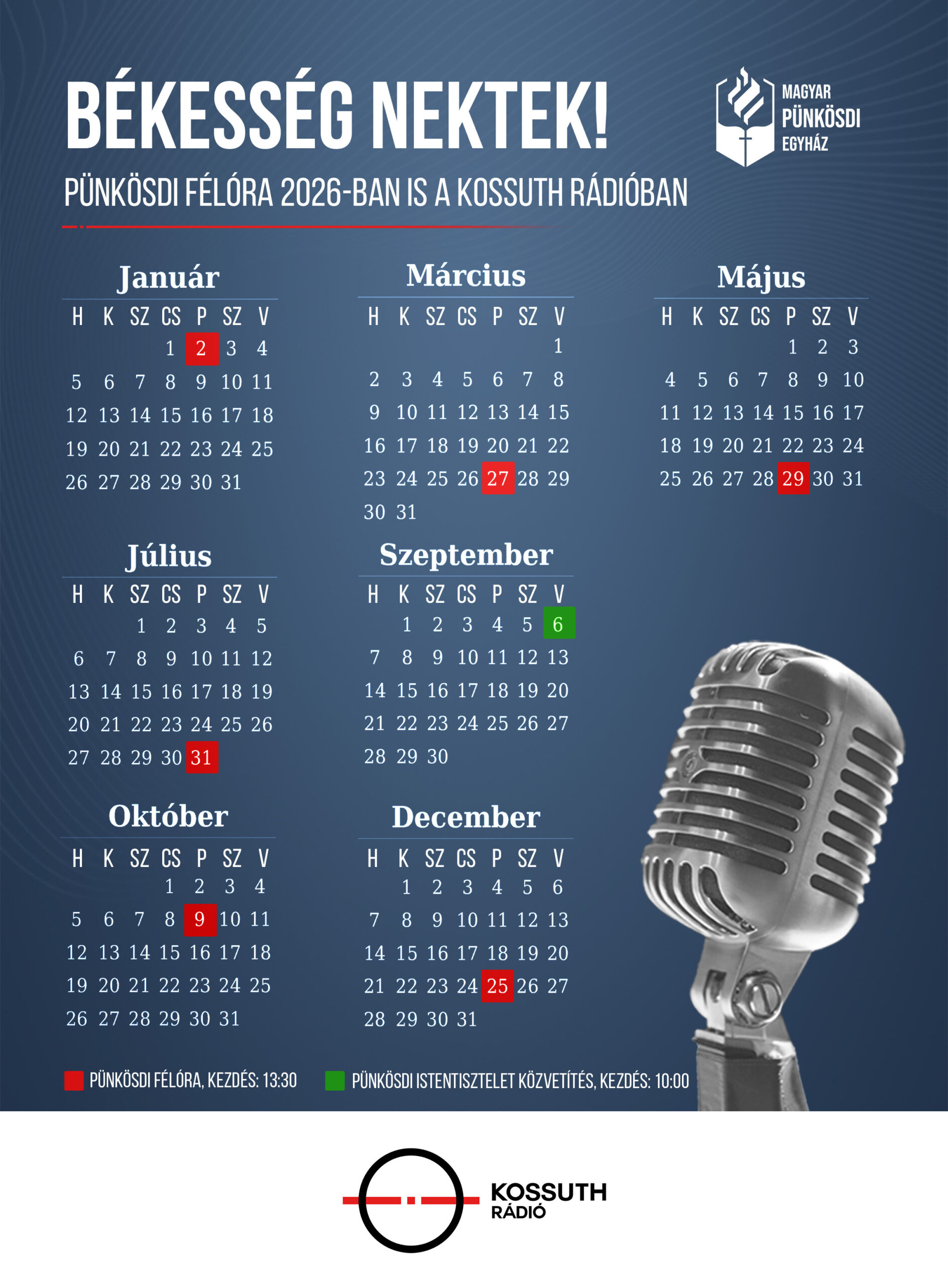 A Békesség nektek című műsor Egyházunk vallási félórája a Kossuth Rádióban, melyben inspiráló igei üzeneteket, sorsfordító bizonyságokat és érdekes interjúkat hallhattok.